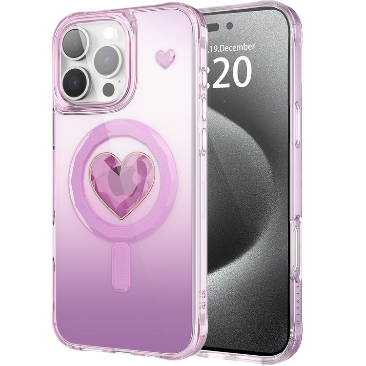 Levelo Hearts Magsafe Case for iPhone 16 Pro Max with 3D Heart Design, Anti Yellowing, Anti Fingerprint, Hybrid Construction, Swarovski Heart Crystal, MagSafe Compatible - Pink