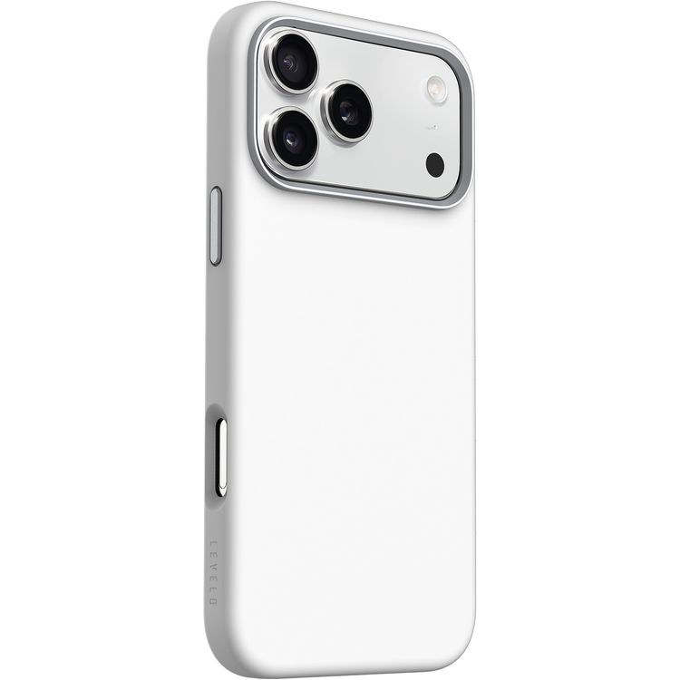 Levelo Iris MagSafe Liquid Silicone Case for iPhone 17 Pro, Strong Magnets, Drop-Tested, Aluminum Alloy Frame for Camera & Buttons, Shock-Resistant Bumper, Premium Silicone Grip - Silver