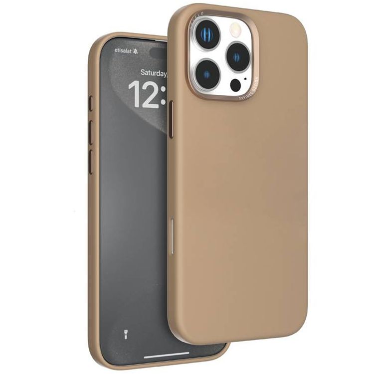 Levelo Iris Magsafe Liquid Silicone Case for iPhone 16 Pro Max with Metal Camera Ring, Impact-Resistant Corners, Strong MagSafe Magnet, Comfortable & Secure Grip - Rose Gold Titanium
