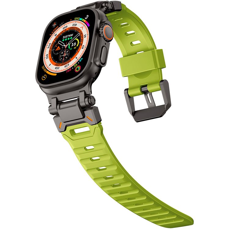 Levelo Kyoto Watch Strap, Apple Watch SE 9/8/7/6/5 (46/49mm), Fluoro Rubber & Stainless Steel Finish, Chemical Resistance, Hypoallergenic, 24/7 Wearability - Acid Green