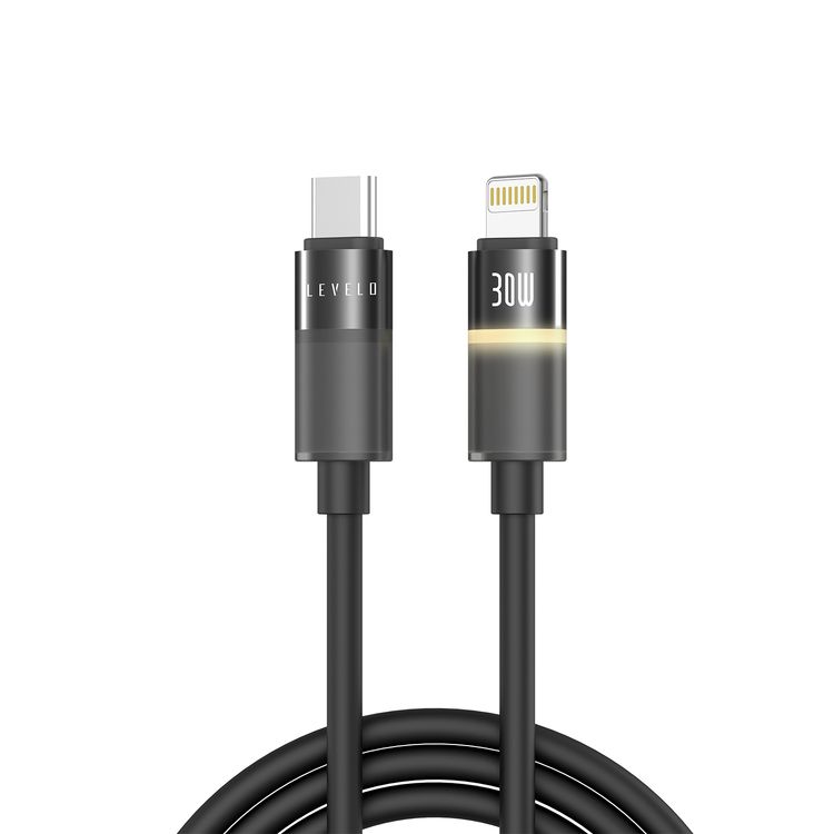Levelo Luno USB-C to Lightning Cable with 30W Power Delivery, 1m Cable Length, 480Mbps Data Transfer Speed, Silicone Material, Tangle-Free, LED Indicator - Black