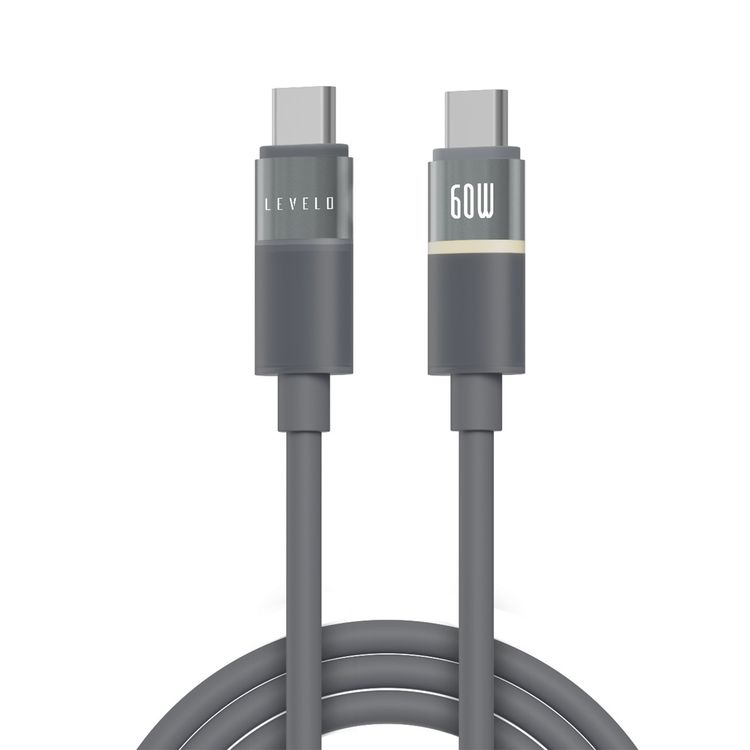 Levelo Luno USB-C to USB-C Cable with 60W Power Delivery, 1m Cable Length, 480Mbps Data Transfer Speed, Silicone Material, Tangle-Free, LED Indicator - Smokey Gray