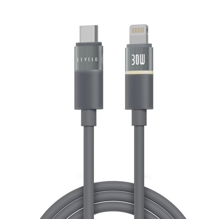 Levelo Luno USB-C to Lightning Cable with 30W Power Delivery, 1m Cable Length, 480Mbps Data Transfer Speed, Silicone Material, Tangle-Free, LED Indicator - Smokey Gray