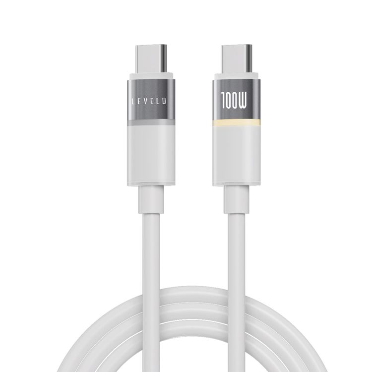 Levelo Luno USB-C to USB-C Cable with 100W Power Delivery, 1m Cable Length, 480Mbps Data Transfer Speed, Silicone Material, Tangle-Free, LED Indicator - Lunar White