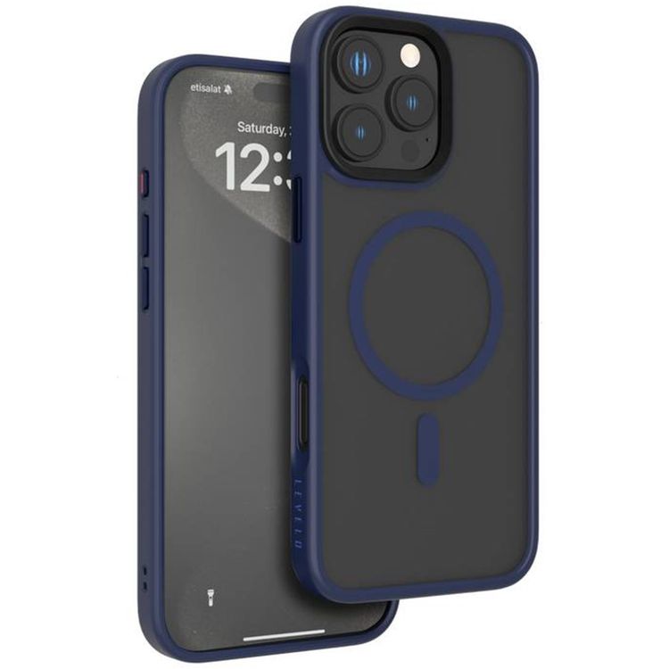 Levelo Matte Solo Case with MagSafe Compatibility for iPhone 16 Pro Max, Impact-Resistant Corners, Anti-Fingerprint, Hybrid Construction - Blue