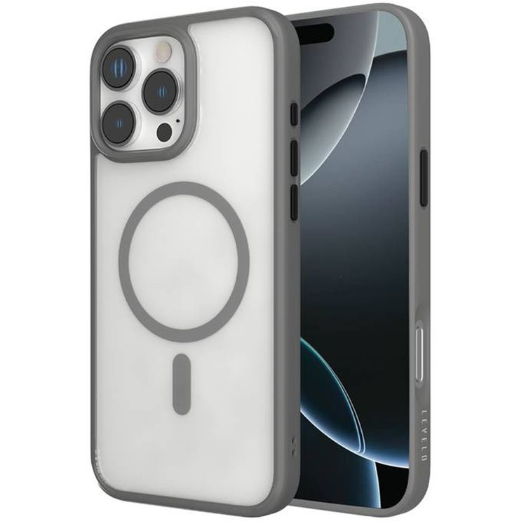 Levelo MagSafe Solo Case for iPhone 16 Pro, Clearview Technology, 3H Scratch Resistance, Hybrid Construction - Gray