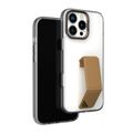 Levelo Morphix Clara Case for iPhone 16 Pro, Hybrid Material, Impact-Resistant Corners, Built-in Leather Grip, Metal Camera Ring - Rose Gold Titanium