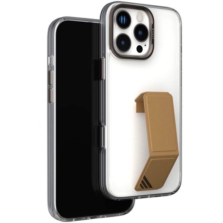 Levelo Morphix Clara Case for iPhone 16 Pro Max, Hybrid Material, Impact-Resistant Corners, Built-in Leather Grip, Metal Camera Ring - Rose Gold Titanium