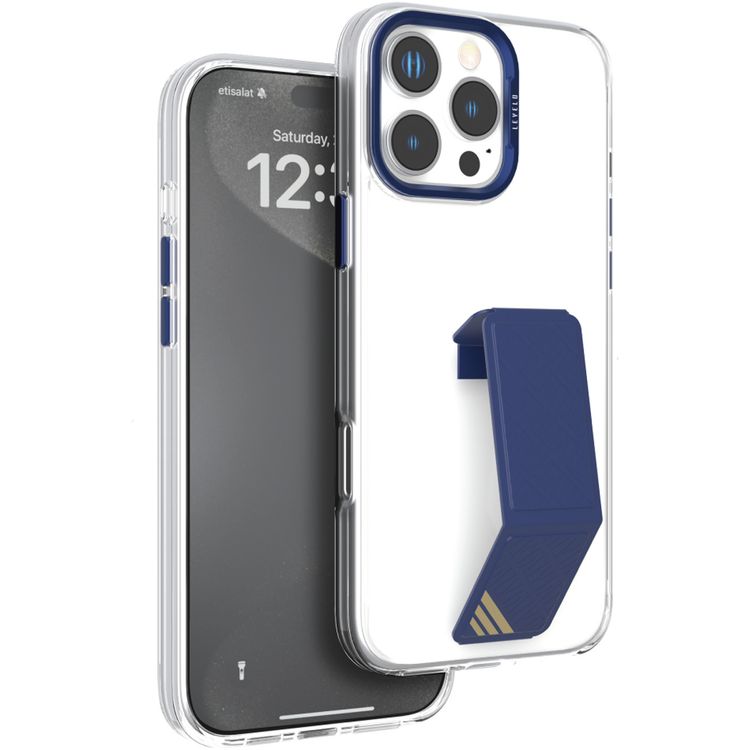 Levelo Morphix Clara Case for iPhone 16 Pro Max, Hybrid Material, Impact-Resistant Corners, Built-in Leather Grip, Metal Camera Ring - Blue