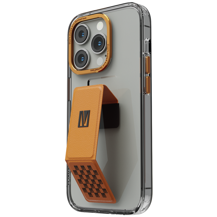 Levelo Morphix Clara Gripstand Protective Case IMD, Clear Back, iPhone 14 Pro Compatibility - Orange