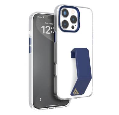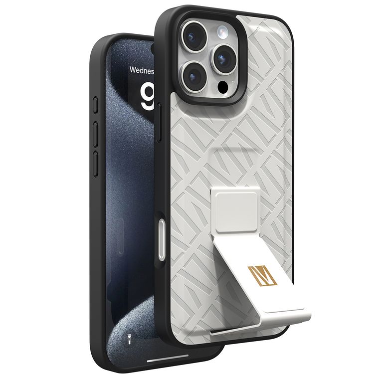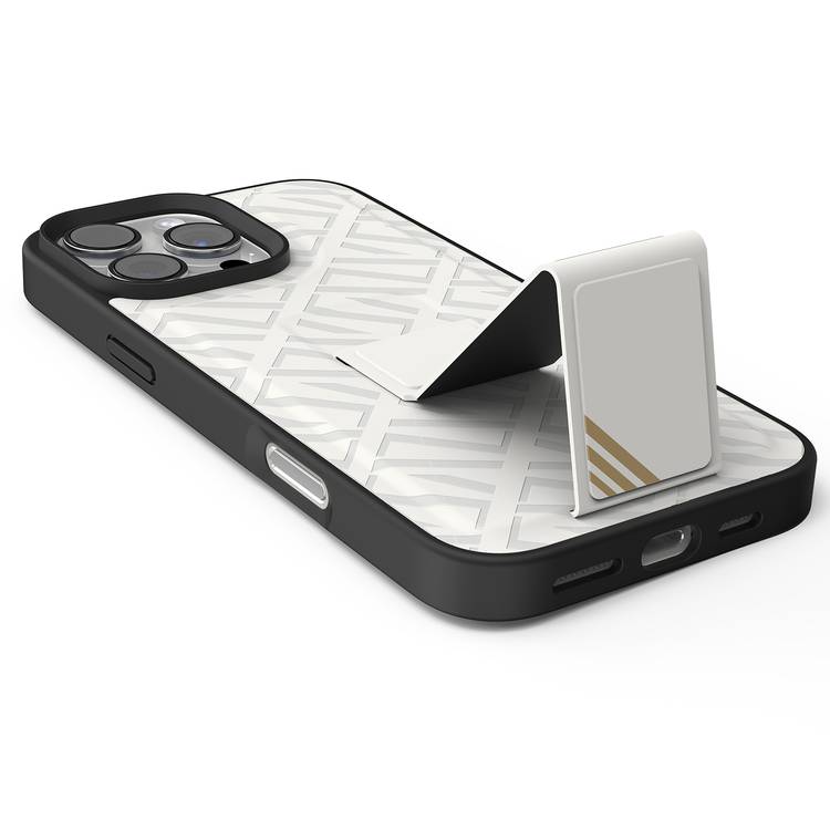 Levelo Morphix Cuero Gripstand Case for iPhone 16 Pro Max, Built-in Grip, Easy Snap On, Impact Resistance Corners - White