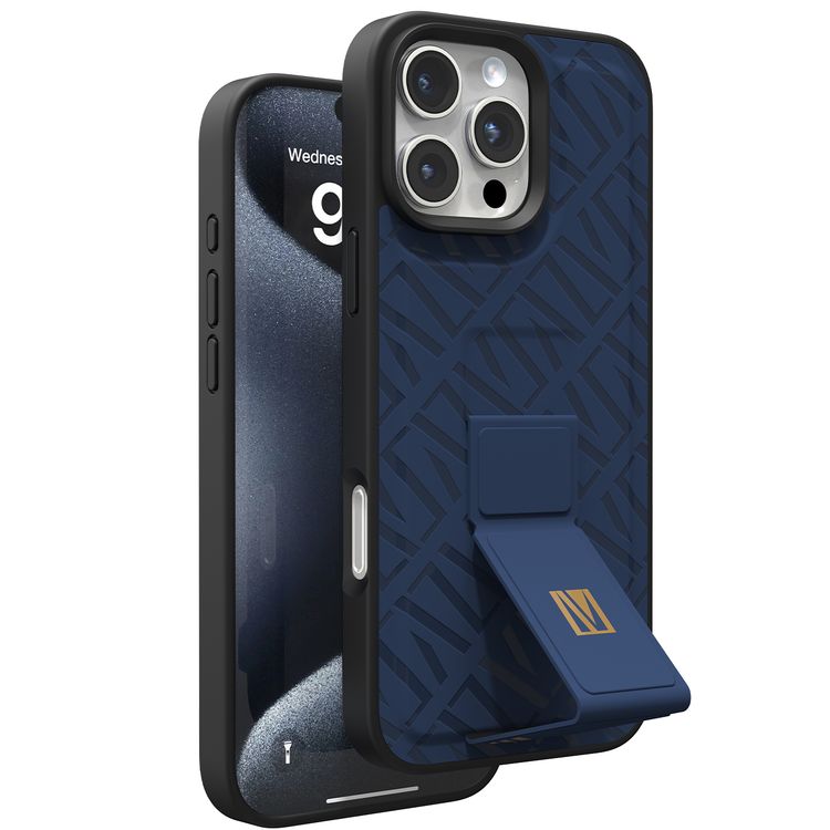 Levelo Morphix Cuero Gripstand Case for iPhone 16 Pro, Built-in Grip, Easy Snap On, Impact Resistance Corners - Blue