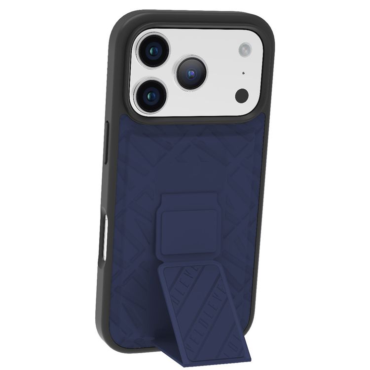 Levelo Morphix Cuero GripStand Case for iPhone 17 Pro, Raised Bezels for Camera & Screen, Shock-Resistant Bumper, Secure Hold, Horizontal & Vertical Viewing - Midnight Blue