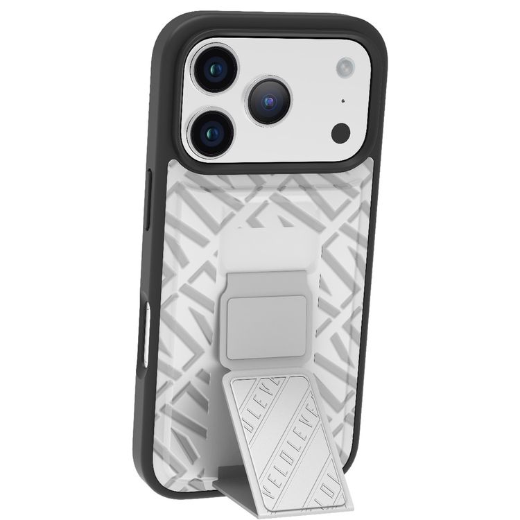 Levelo Morphix Cuero GripStand Case for iPhone 17 Pro, Raised Bezels for Camera & Screen, Shock-Resistant Bumper, Secure Hold, Horizontal & Vertical Viewing - Silverstone
