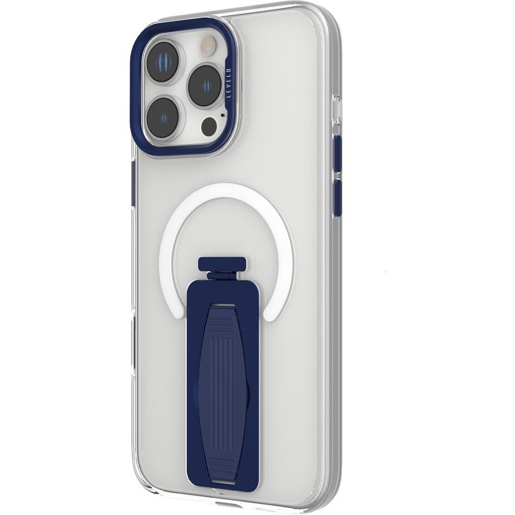 Levelo Morphix MagSafe Grip Case for iPhone 16 Pro Max, Impact Resistant Corners, Metal Camera Ring, Multi Functional Kickstand Premium Bayer TPU, Silicone Grip - Blue