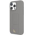 Levelo Morphix Silicone Case with Leather Grip for iPhone 16 Pro Max, Metal Camera Ring, Multi-Functional Kickstand, Impact-Resistant Corners, Super Durable Materials - Gray