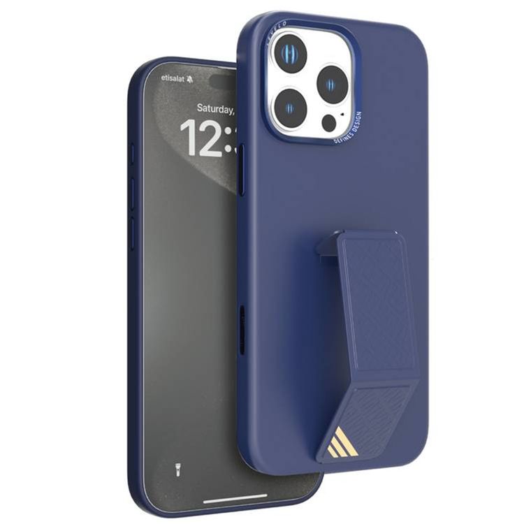 Levelo Morphix Silicone Case with Leather Grip for iPhone 16 Pro, Metal Camera Ring, Multi-Functional Kickstand, Impact-Resistant Corners, Super Durable Materials - Deep Blue