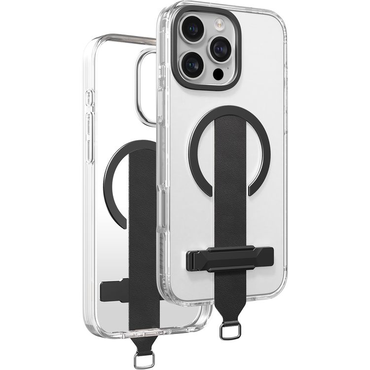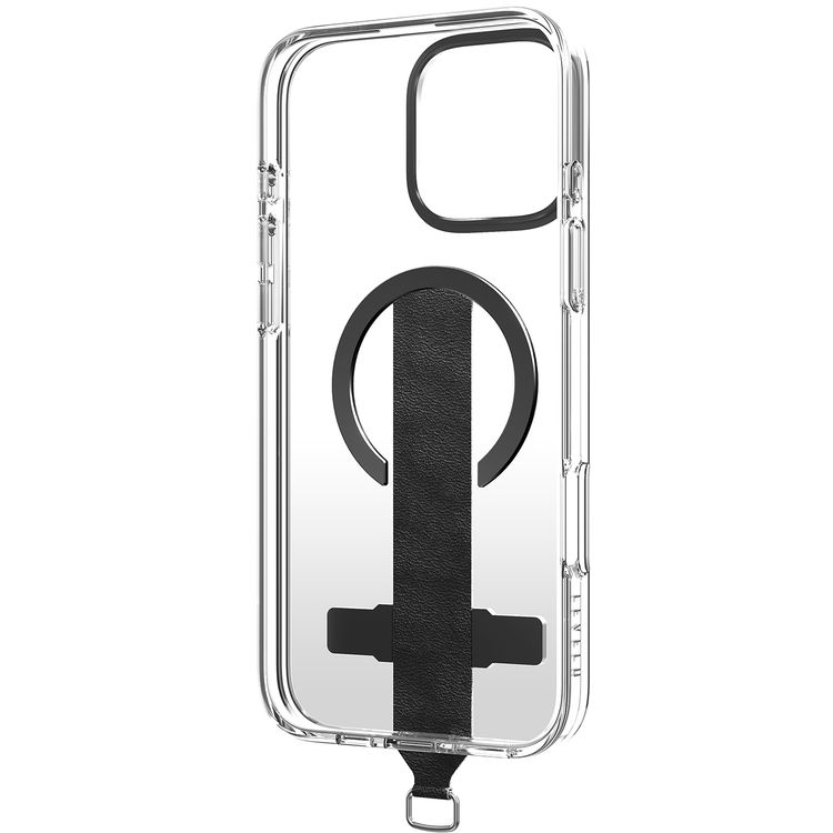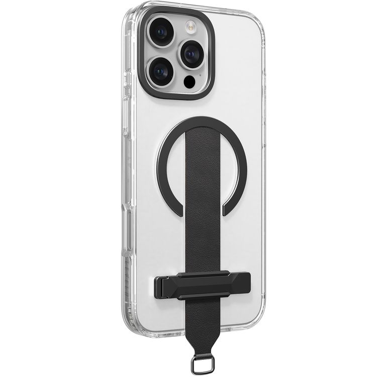 Levelo Morphix Trio Case for iPhone 16 Pro Max with Built-in Kickstand, Metal Camera Edge, MagSafe Compatible, Impact-Resistant Corners, Grip Strap & Metal Hook, Anti Yellowing - Ink Black