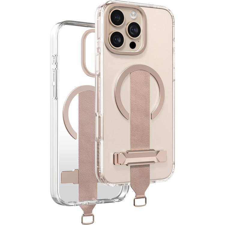 Levelo Morphix Trio Case for iPhone 16 Pro Max with Built-in Kickstand, Metal Camera Edge, MagSafe Compatible, Impact-Resistant Corners, Grip Strap & Metal Hook, Anti Yellowing - Desert Sand