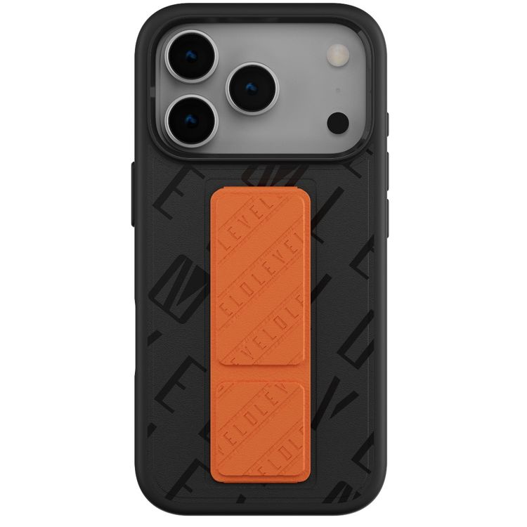 Levelo Morphix Vallo Faux Leather GripStand Case for iPhone 17 Pro Max, MagSafe & Magnetic Compatibility, Horizontal & Vertical Stand Positions, True Microfiber Interior Lining, Shock-Resistant Bumper, Strong Magnets - Onyx Flame