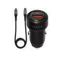 Levelo Nori Mini 60W Car Charger with USB-C to Lightning Cable, USB-C & USB-A Ports, Fast Charging, 60W Power Delivery, 12-24V Input Power, Durable Material - Gun Gray