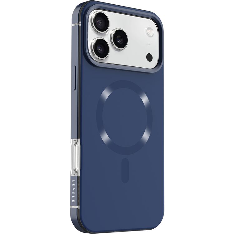 Levelo Opulis MagSafe Frosted Case for iPhone 17 Pro, Liquid Silicone Comfort, Anti-Scratch, Aluminum Alloy Frame for Camera & Edges, Anti-Fingerprint, Strong Magnets, Multi-Layer Design, Shock-Resistant Bumper, Non-Slip Surface - Midnight Blue