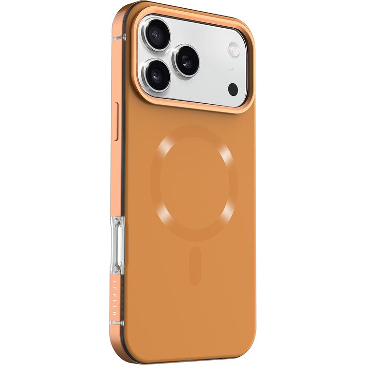 Levelo Opulis MagSafe Frosted Case for iPhone 17 Pro, Liquid Silicone Comfort, Anti-Scratch, Aluminum Alloy Frame for Camera & Edges, Anti-Fingerprint, Strong Magnets, Multi-Layer Design, Shock-Resistant Bumper, Non-Slip Surface - Sunrise Orange