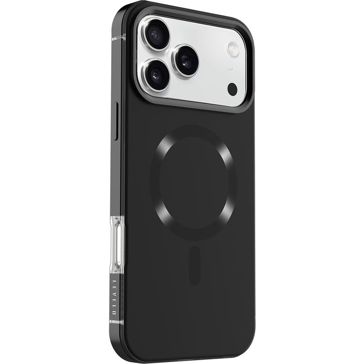 Levelo Opulis MagSafe Frosted Case for iPhone 17 Pro Max, Liquid Silicone Comfort, Anti-Scratch, Aluminum Alloy Frame for Camera & Edges, Anti-Fingerprint, Strong Magnets, Multi-Layer Design, Shock-Resistant Bumper, Non-Slip Surface - Phantom Black