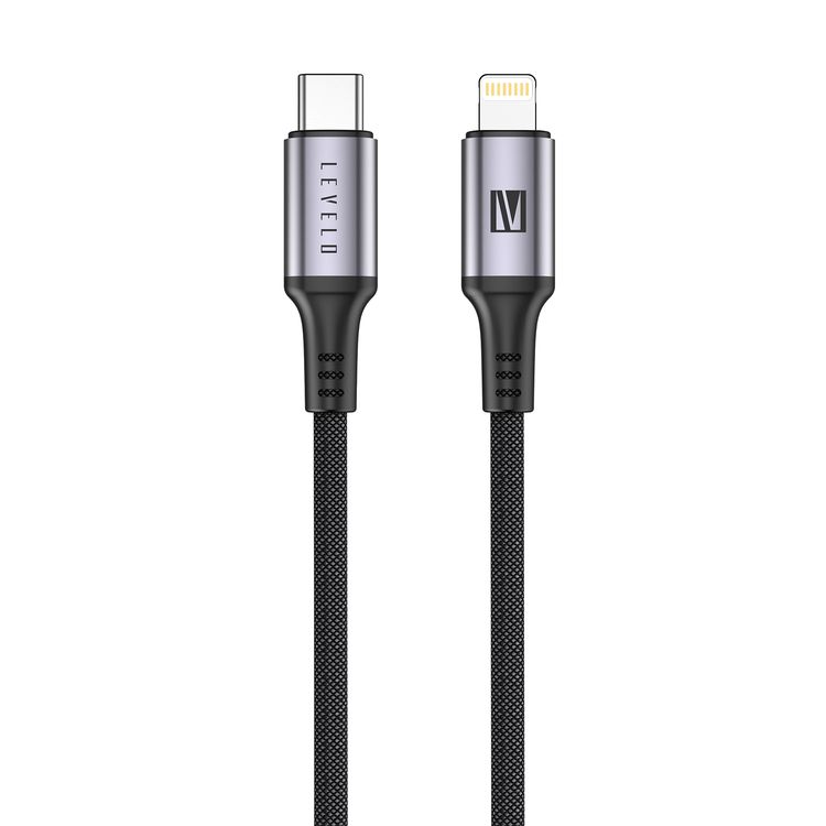 Levelo Otto USB-C to Lightning Cable with Heat-Resistant, Fast Charge & Data Sync, 480Mbps Data Transfer Rate, Tangle-Free, 1.2m Cable Length - Black