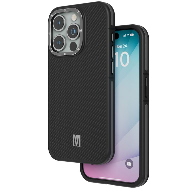 Levelo Ox Carbon Case for iPhone 15 Pro Max, MagSafe Compatible, Reinforced Corners with Air Guard, Shock-Proof Edges, 3H Scratch Resistance, Raised Camera Bezel - Gray