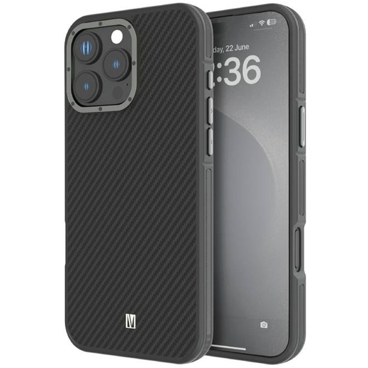 Levelo Ox Carbon Case for iPhone 16 Pro, MagSafe Compatible, Matte Coating, Anti-Finger Print - Gray