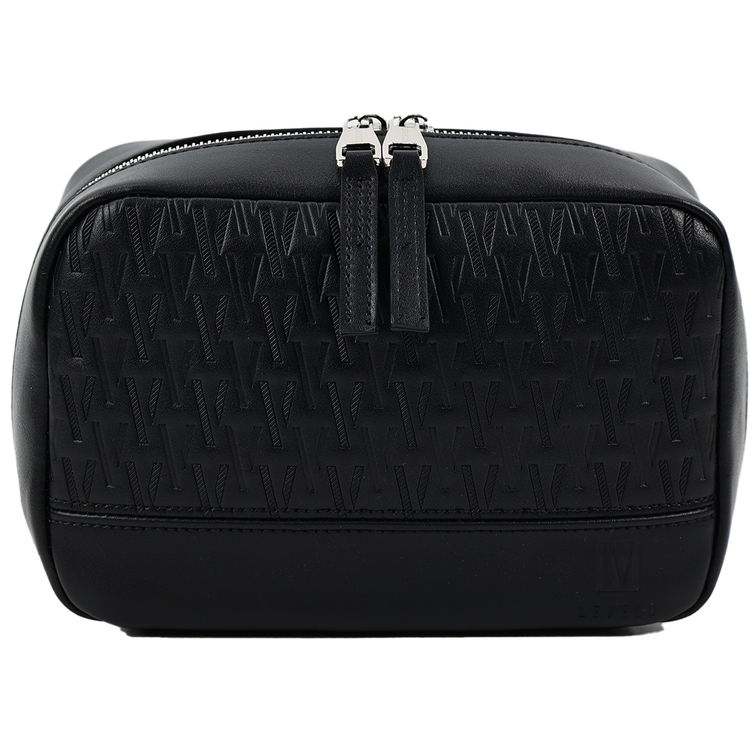 Levelo Pochette Pouch with Mesh Pocket, Built-in Grip Handle, PU Leather Finish & Durable Material, Ample Space, Multiple Compartments, Elastic Strap - Black