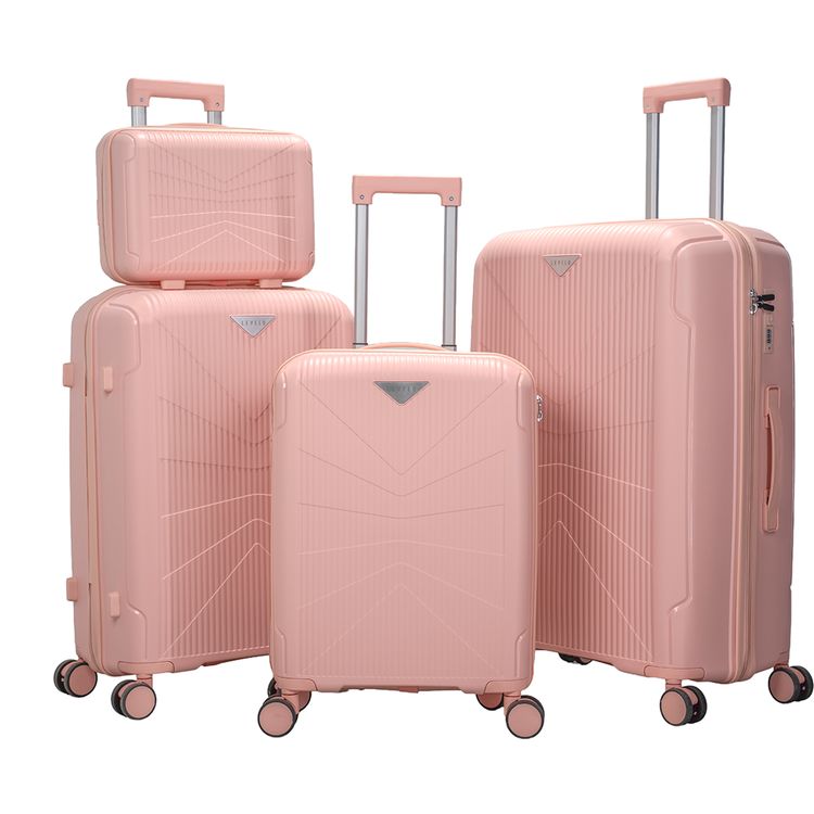 Levelo RoamQuattuor Travel Luggage Set in 4 Sizes 14"/20"/24"/28", 100kg Maximum Weight-Bearing, Shock Resistance, 8 Wheels Trolley, PP & Unbreakable Material, 360° Wheel Rotation, 210D Lining, Mesh Pocket, Water Resistant Design, Anti-Theft Design - Pink