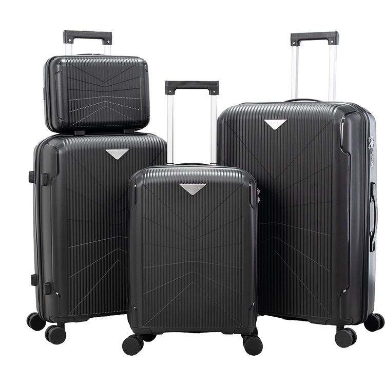 Levelo RoamQuattuor Travel Luggage Set in 4 Sizes 14"/20"/24"/28", 100kg Maximum Weight-Bearing, Shock Resistance, 8 Wheels Trolley, PP & Unbreakable Material, 360° Wheel Rotation, 210D Lining, Mesh Pocket, Water Resistant Design, Anti-Theft Design - Black