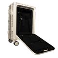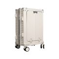 Levelo RoamRollers 20" Travel Luggage with Aluminum Body Material, USB-A & USB-C Output Ports, Metal Corner Protection, Front Pocket Compatible with Up to 15.6" Laptop, Phone and Cup Holder, Silent Spinner Wheels - White