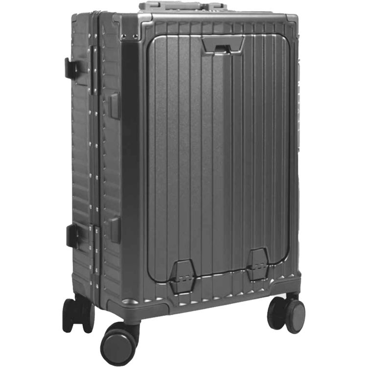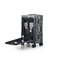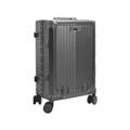 Levelo RoamRollers 20" Travel Luggage with Aluminum Body Material, USB-A & USB-C Output Ports, Metal Corner Protection, Front Pocket Compatible with Up to 15.6" Laptop, Phone and Cup Holder, Silent Spinner Wheels - Titanium Gray