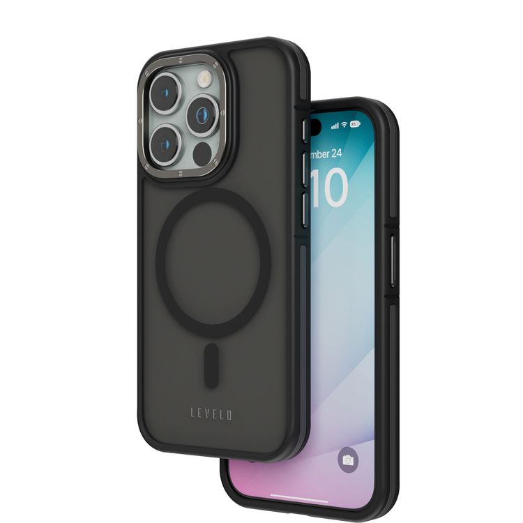 Levelo Rouge MagSafe Matte Case with Metal Camera Ring, Shock-Proof Edges, MagSafe Compatibility, 3H Anti-Scratch, Reinforced Corners with Airguard, Matte Finish Design - Black