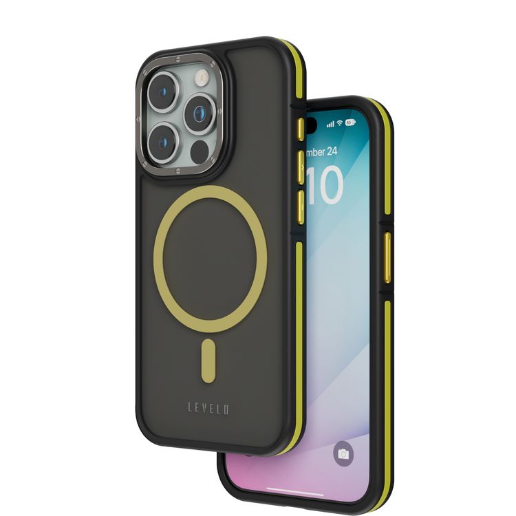 Levelo Rouge MagSafe Matte Case with Metal Camera Ring, Shock-Proof Edges, MagSafe Compatibility, 3H Anti-Scratch, Reinforced Corners with Airguard, Matte Finish Design - Yellow