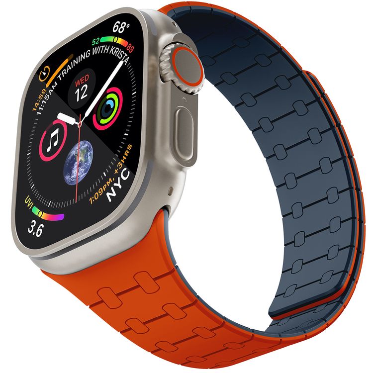 Levelo Royallink Silicone Watch Strap Dual-Color for Apple Watch 49/46mm, Hypoallergenic Material, Built-in 32 Magnets, Water Resistant and Sweat Proof, Strong Magnetic Attachment, Easy Snap-on - Orange / Blue