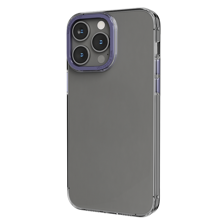 Levelo Sensa Clear Back Case for iPhone 14 Pro Max, Metal Camera Ring, Shockproof Edges, Highly Transparent, Easy Snap-on - Clear / Purple