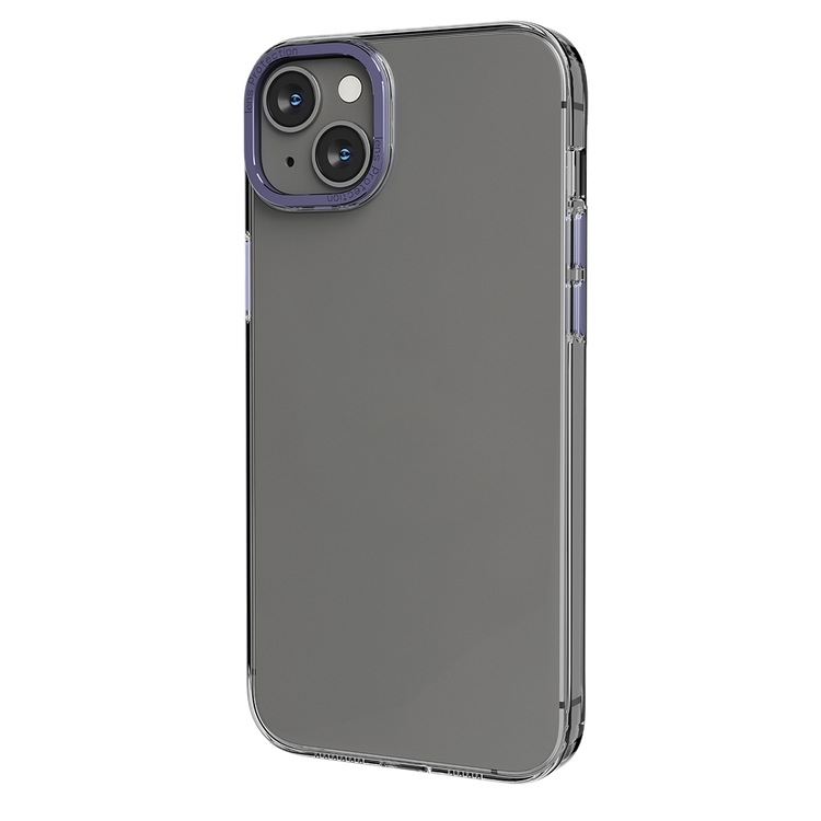 Levelo Sensa Clear Back Case for iPhone 14 Plus, Metal Camera Ring, Shockproof Edges, Highly Transparent, Easy Snap-on - Clear / Purple
