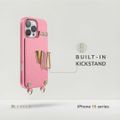 Levelo Serena Leather Case for iPhone 16 Pro, RFID Blocking Material, Built-in Kickstand, Impact-Resistant Corners, 3 Slots Card/Cash - Pink