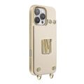 Levelo Serena Leather Case for iPhone 16 Pro Max, Built-In 180° kickstand, Impact-Resistant Corners, 3 Slots Card/Cash, 3 in 1 Hybrid Construction TPU, PC & Leather - Beige