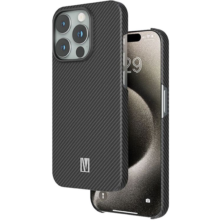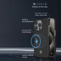 Levelo Sergei 1500D Aramid Fiber Case for iPhone 15 Pro Max, MagSafe Compatible, Shock-Proof Edges, Slim & Lightweight Design - Black