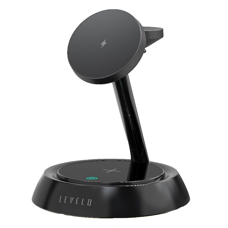 Levelo Sienese 3-in-1 Wireless Charger with MagSafe Compatibility, 15W Output Power, 0.8kg Magnetic Attraction, Heat Dissipation System, Anti-Slip Mat, Night Light - Black