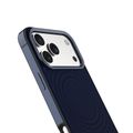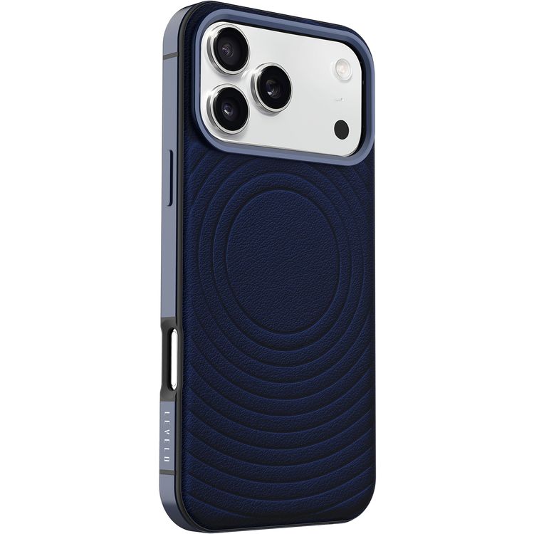 Levelo Spirale PU Leather Hybrid Case for iPhone 17 Pro, MagSafe Compatible & Strong Magnets, Impact-Resistant, Shock-Resistant Bumper, Aluminum Alloy Frame for Camera & Edges, Drop-Tested - Midnight Blue