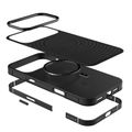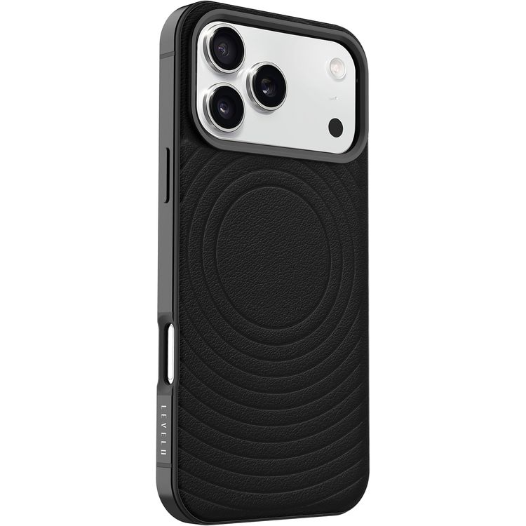 Levelo Spirale PU Leather Hybrid Case for iPhone 17 Pro Max, MagSafe Compatible & Strong Magnets, Impact-Resistant, Shock-Resistant Bumper, Aluminum Alloy Frame for Camera & Edges, Drop-Tested - Phantom Black