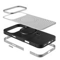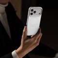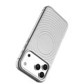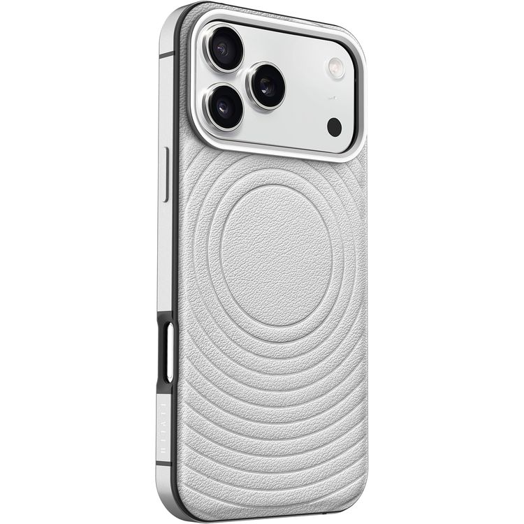 Levelo Spirale PU Leather Hybrid Case for iPhone 17 Pro, MagSafe Compatible & Strong Magnets, Impact-Resistant, Shock-Resistant Bumper, Aluminum Alloy Frame for Camera & Edges, Drop-Tested - Silverstone