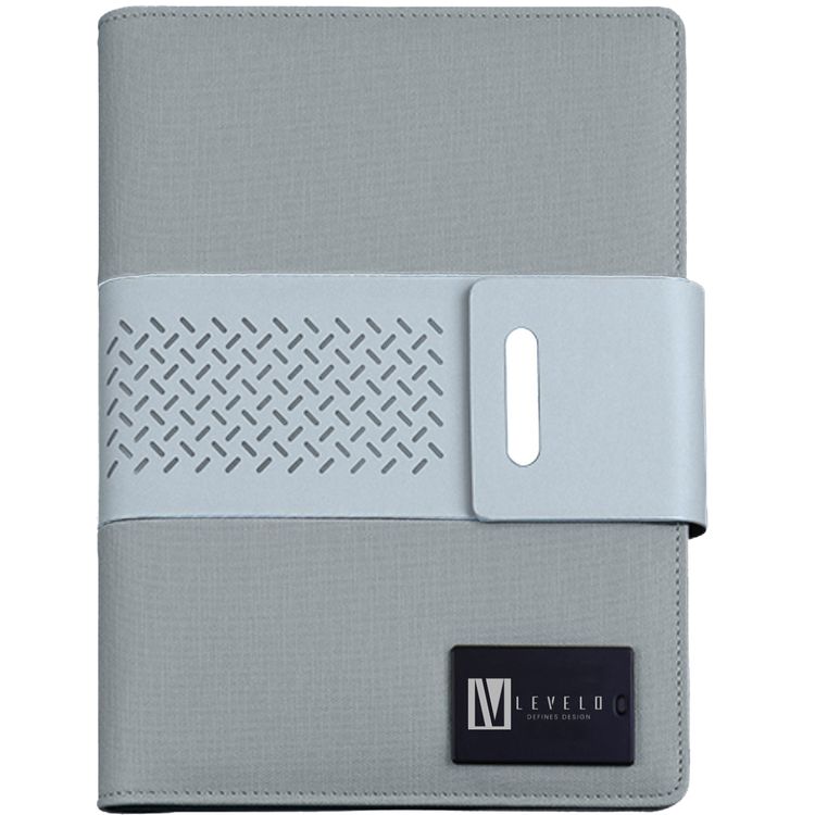 Levelo Techbook Notebook Leather Cover with 8000mAh Built-in Power Bank, Ballpoint Pen, 80pcs Paper Sheets, Loose-Leaf Binder - Gray