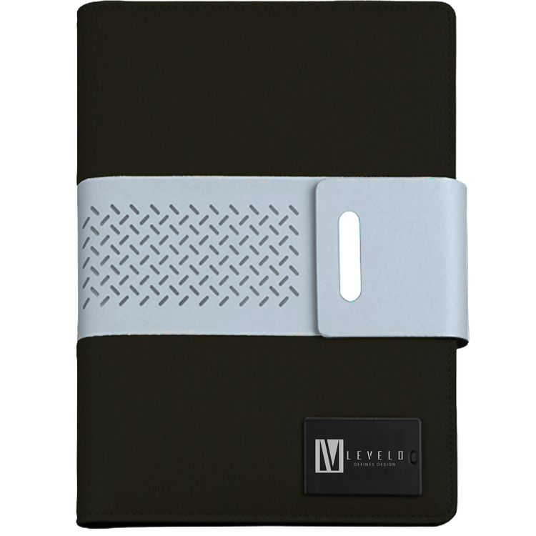 Levelo Techbook Notebook Leather Cover with 8000mAh Built-in Power Bank, Ballpoint Pen, 80pcs Paper Sheets, Loose-Leaf Binder - Black